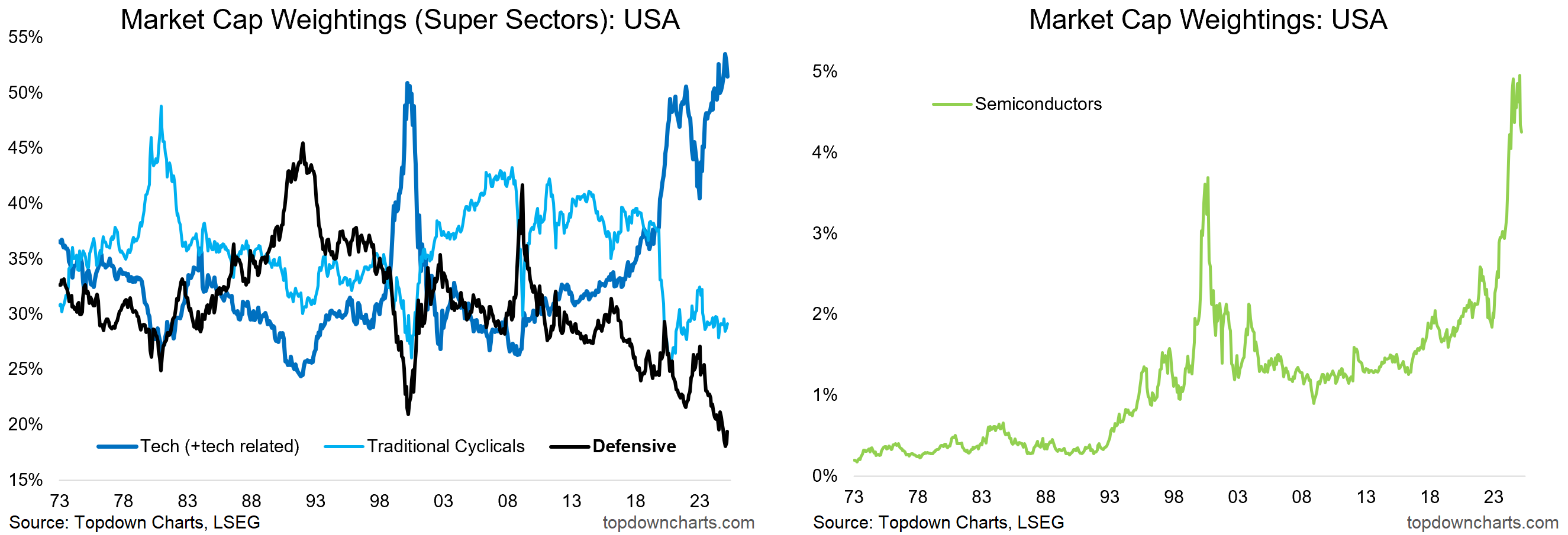 Another angle on that is the record high reached in market cap weighting to tech and tech related sectors, and in particular the semiconductor AI hype driven bubble.