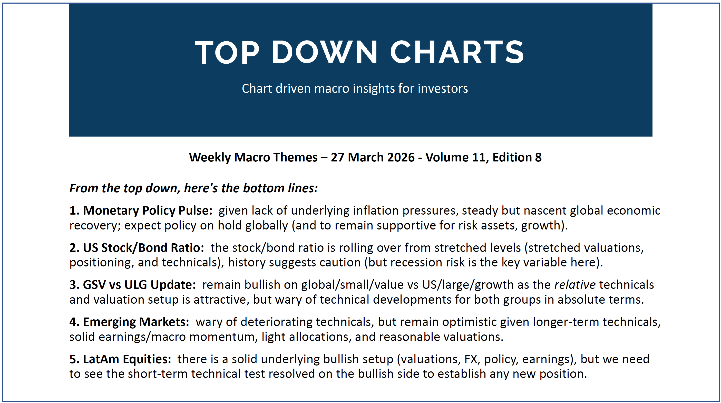 5. LatAm Equities: there is a solid underlying bullish setup (valuations, FX, policy, earnings), but we need to see the short-term technical test resolved on the bullish side to establish any new position.